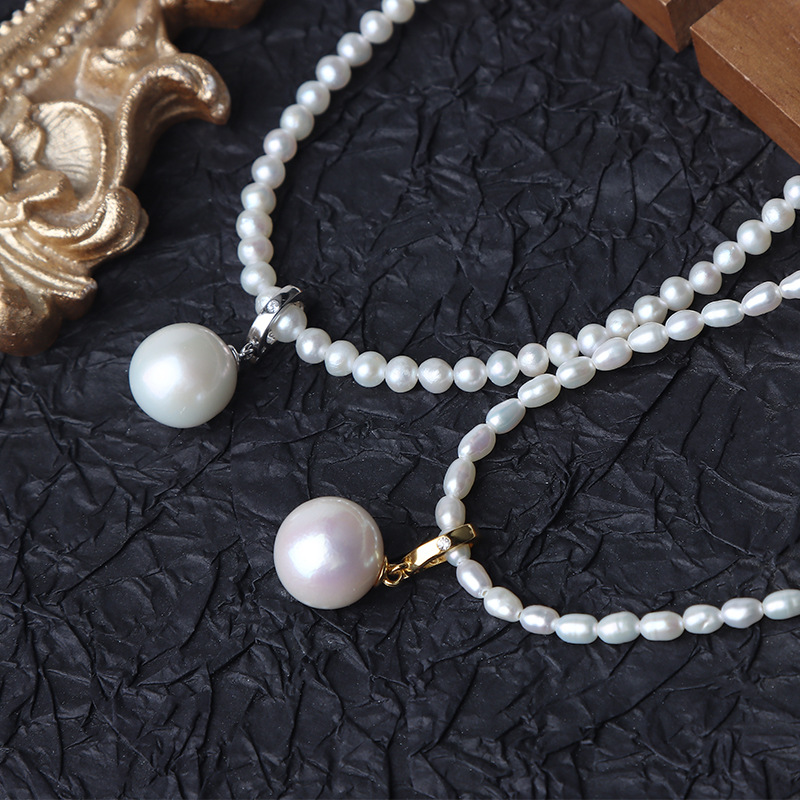 Photo-revue d'un pendentif en perles baroques naturelles irrégulières