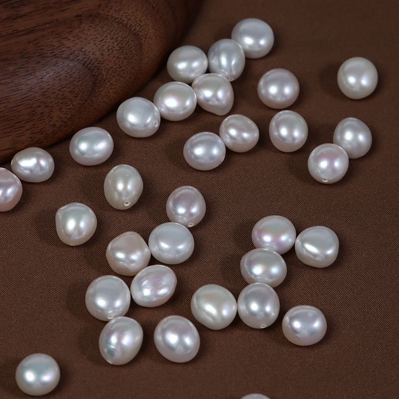 Perles d'eau douce baroques à dos plat, semi-percées, de 8,5 à 9 mm
