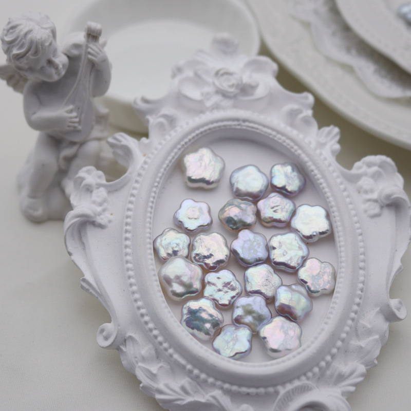 Perles d'eau douce en forme de fleur, lustre argenté naturel